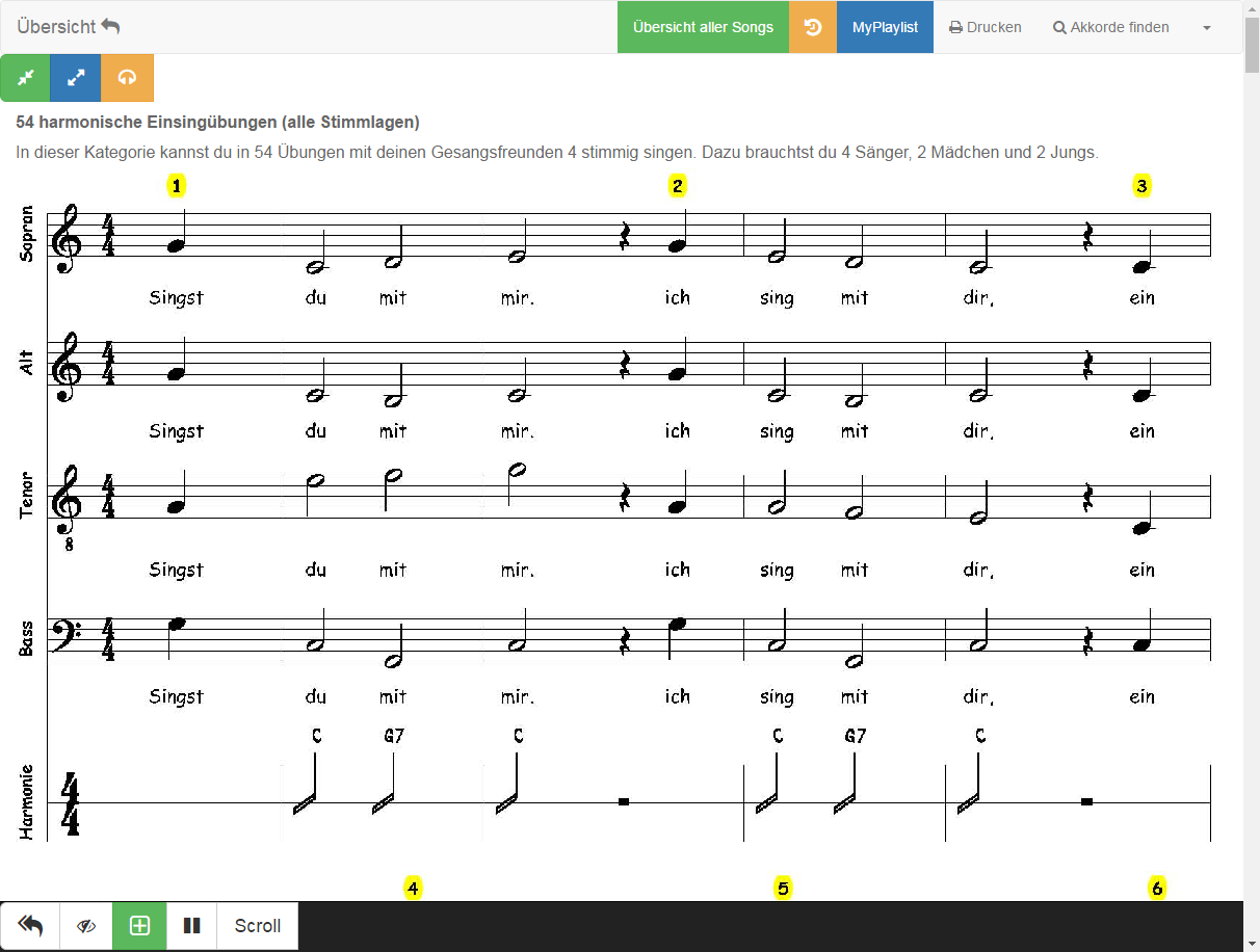 In diesem kostenlosen Kategorie kannst du in 54 Übungen mit deinen Gesangsfreunden 4 stimmig Singen. Dazu brauchtst du 4 Sänger, 2 Mädchen und 2 Jungs.